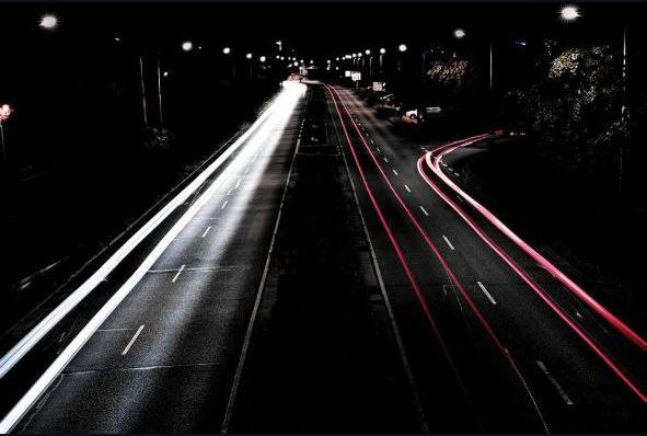 View from a bridge in Magdeburg, Germany, during night